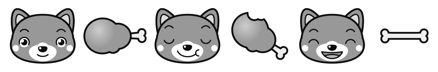 犬と骨付き肉ライン・罫線イラスト|動物、昆虫|ライン・罫線イラスト|素材のプチッチ