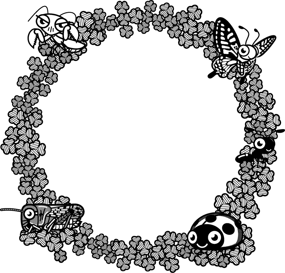 虫とクローバーの飾り罫イラスト|クローバー|飾り罫|素材のプチッチ