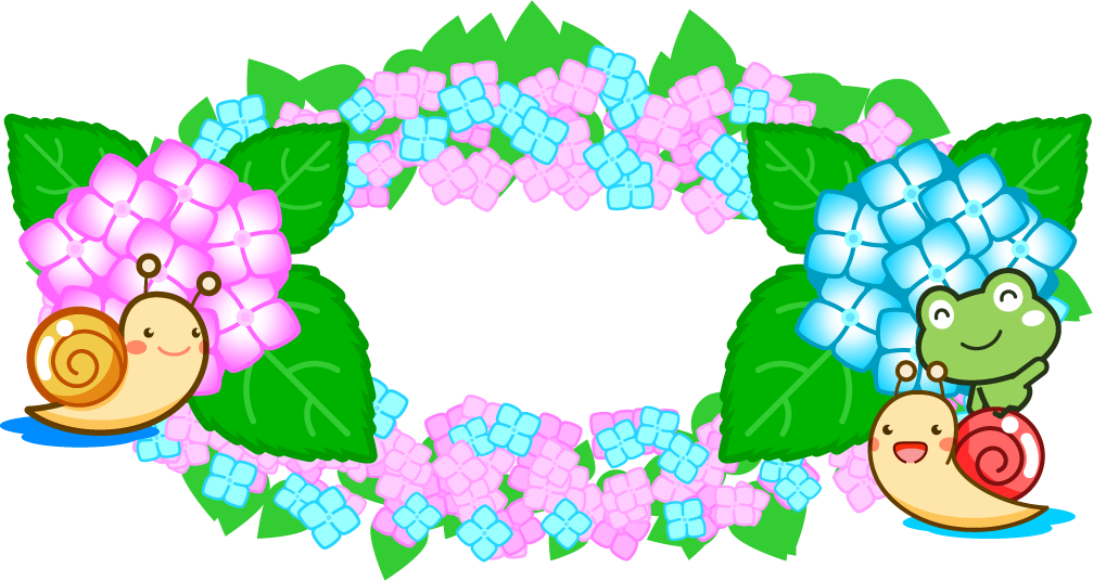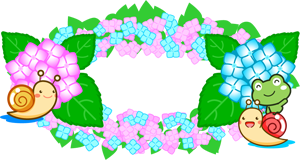 6月の文字イラスト/紫陽花とカタツムリとカエル