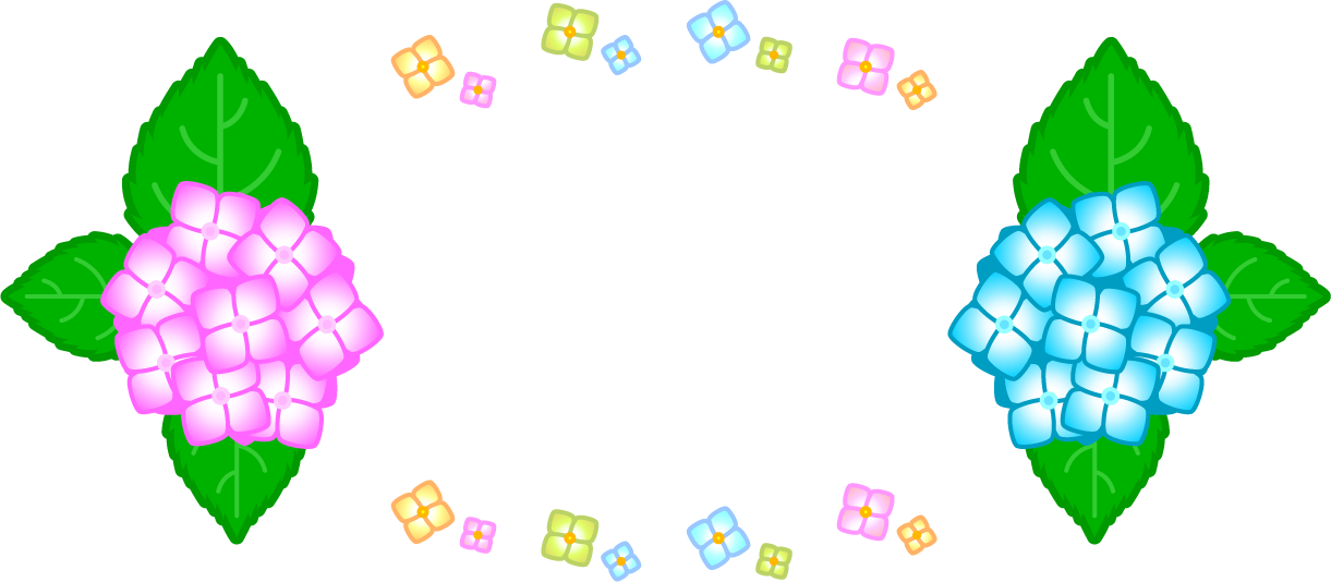 6月イラスト。6月の文字イラスト/紫陽花の花素材。