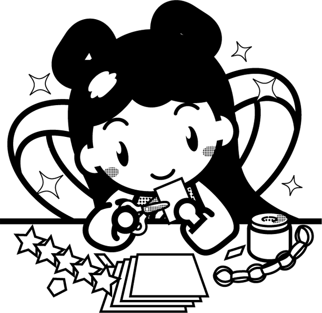 七夕飾りを作る織姫ちゃんイラスト|七夕|7月|季節|素材のプチッチ