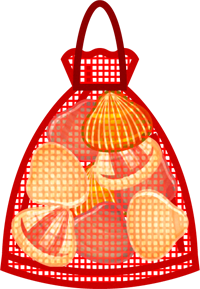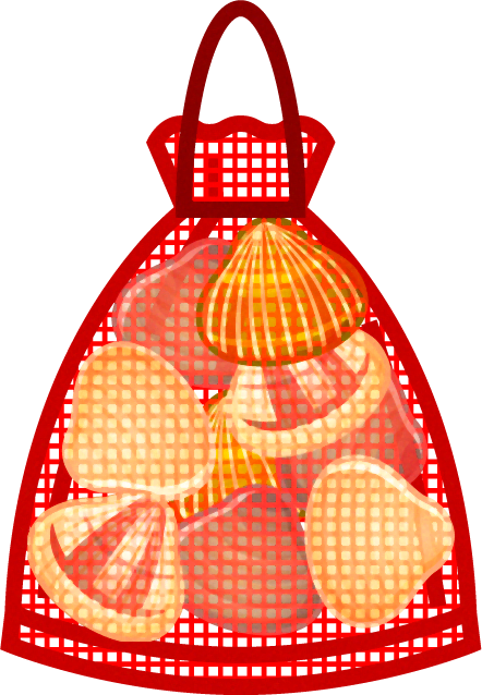網の袋一杯の貝イラスト