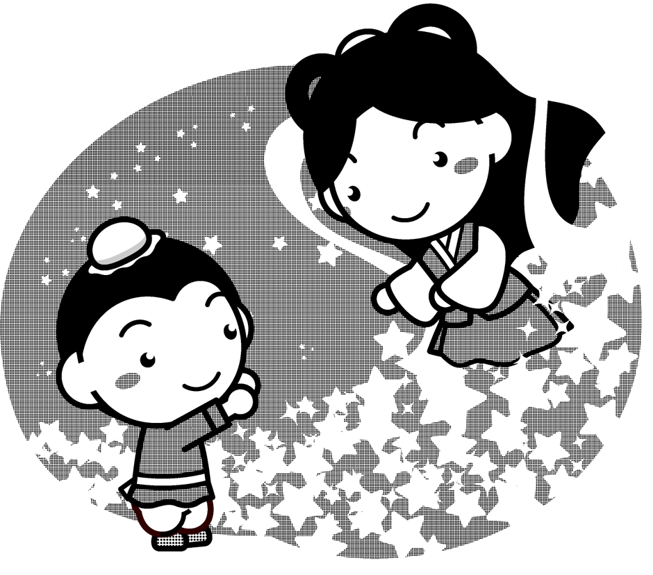 七夕イラスト。天の川と織姫さまと彦星さまイラスト素材。