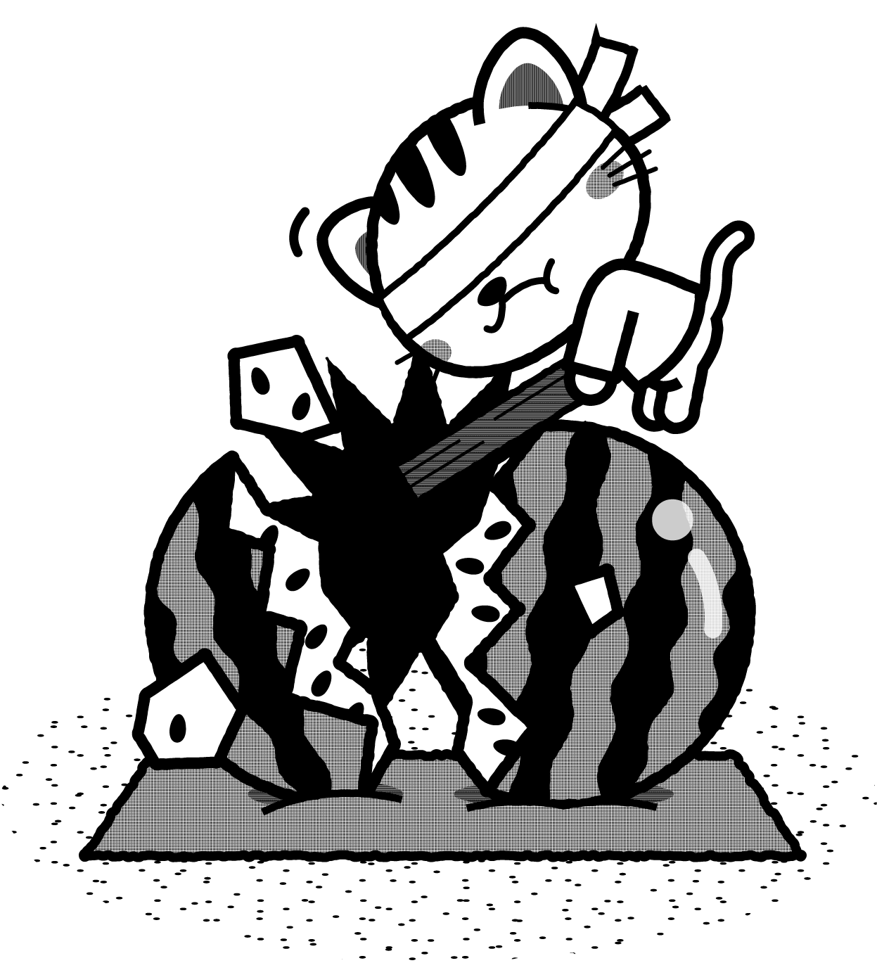 トラネコのイラスト/スイカを割り