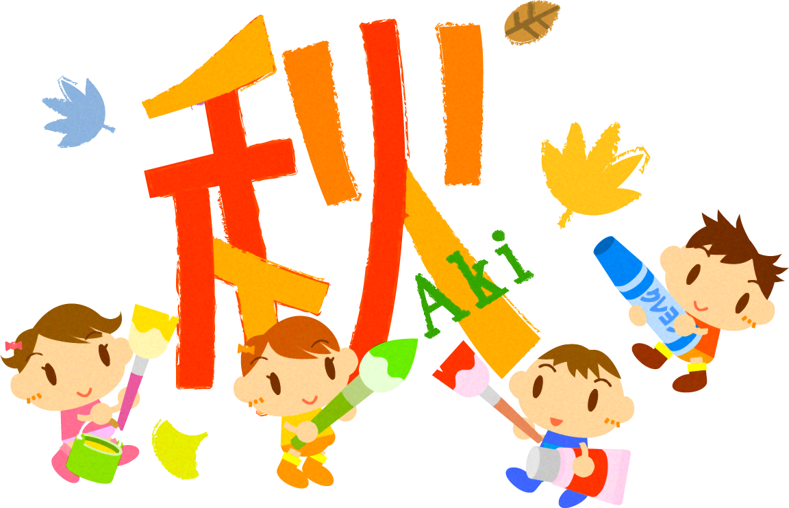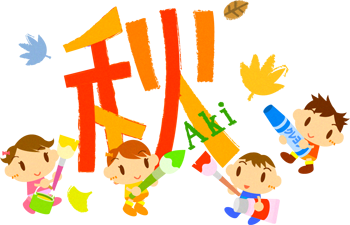 9月イラスト。秋の文字を描く子供たちのイラスト素材。