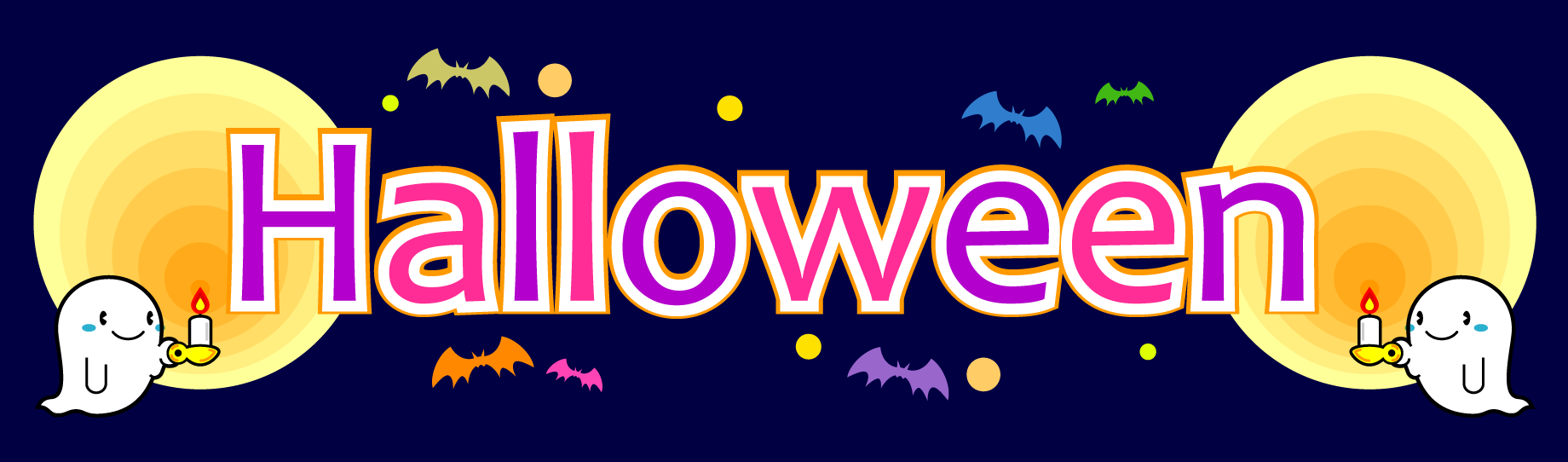 10月イラスト/秋。ハロウィンの文字とゴーストのイラスト素材。
