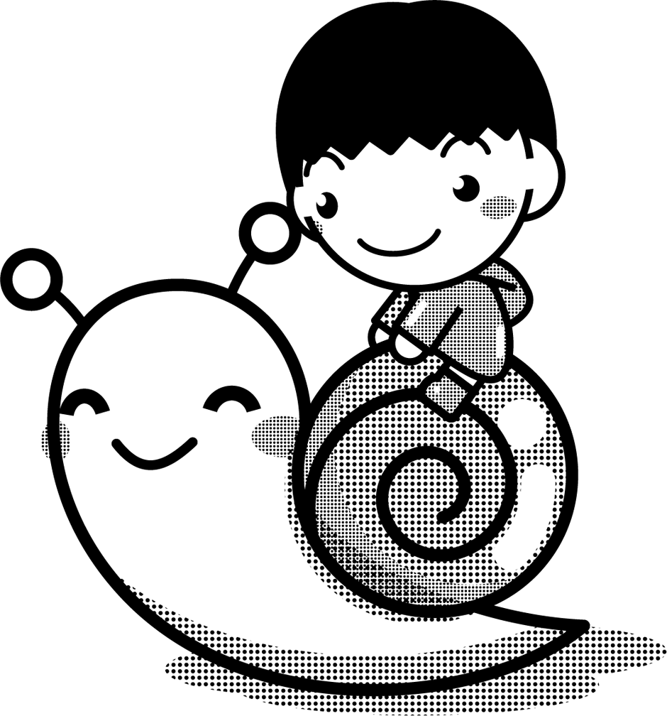 カタツムリに乗った男の子イラスト/茶色