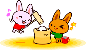 動物イラスト。かわいいウサギのイラスト_正月/餅つき02素材。