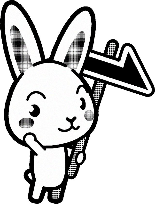 動物イラスト。ウサギのイラスト/右矢印素材。
