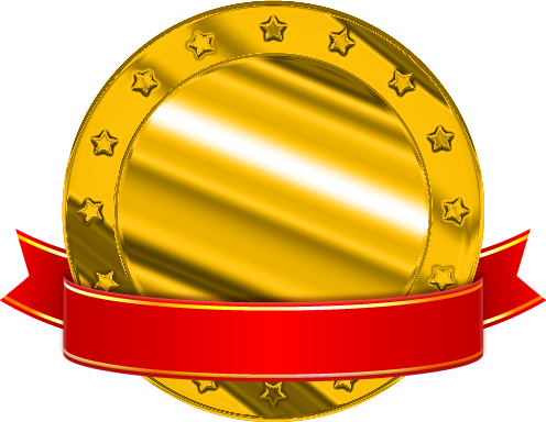 デザインパーツのイラスト。ピカピカ光る金メダルとリボンイラスト素材。