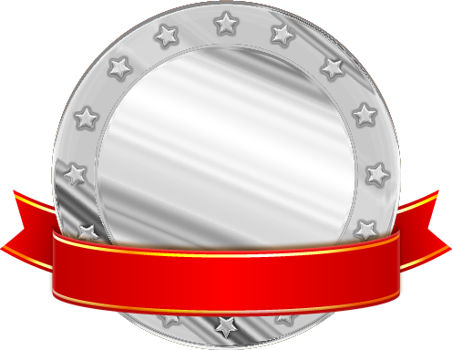 ピカピカ光る銀メダルとリボンイラスト