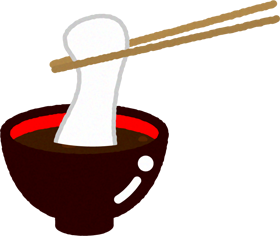 おしるこのイラスト/餅を箸でつまむ