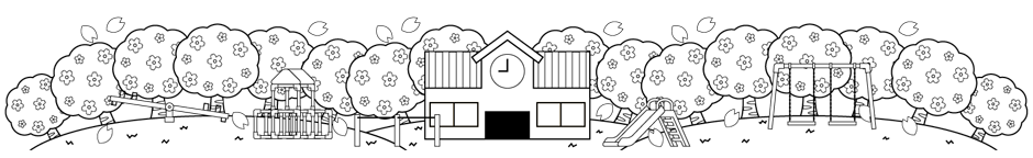 4月素材。桜と幼稚園ライン・罫線イラスト/風景素材。