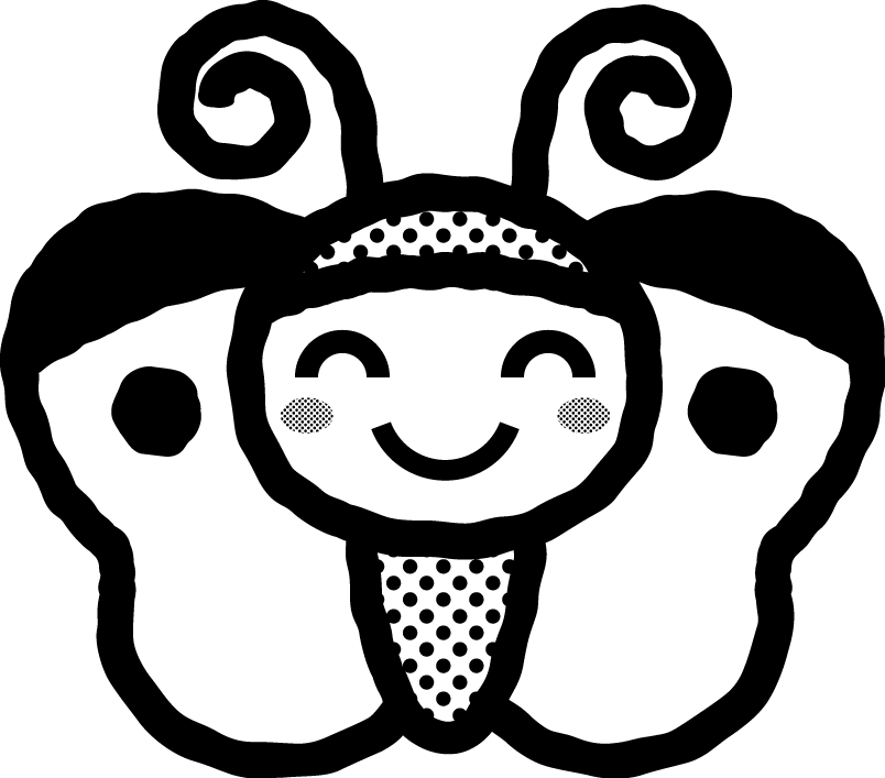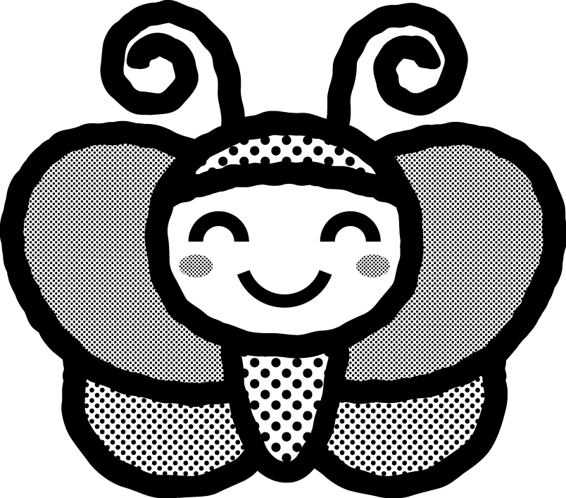 かわいい虫イラスト_蝶_にっこり_モノクロ(白黒)