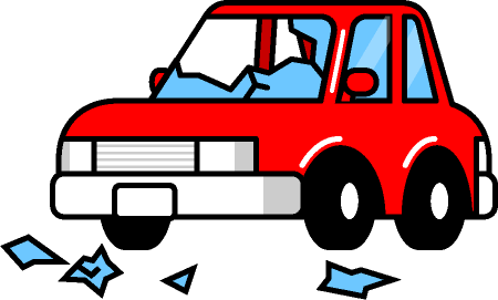 フロントウィンドガラスが割れた車イラスト|かわいい顔の車|自動車|乗り物|素材のプチッチ