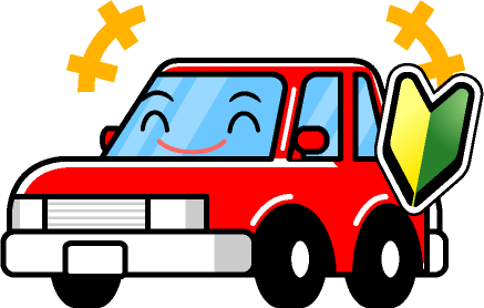 初心者マークと赤い車イラスト|かわいい顔の車|自動車|乗り物|素材のプチッチ