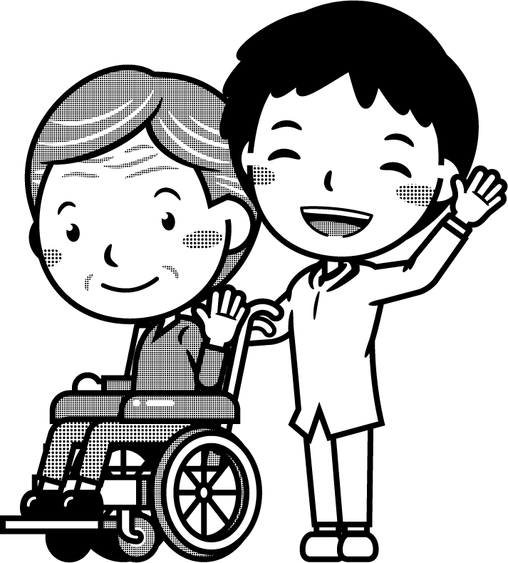 車いすの患者と介護士イラスト