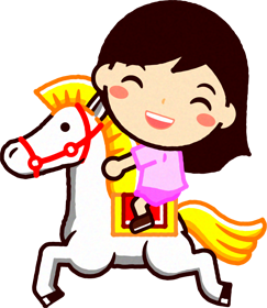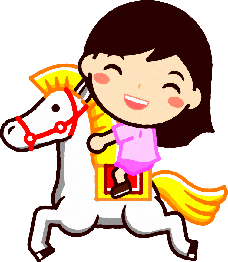遊ぶイラスト素材。無料素材。メリーゴーランドで遊ぶ女の子イラスト素材。