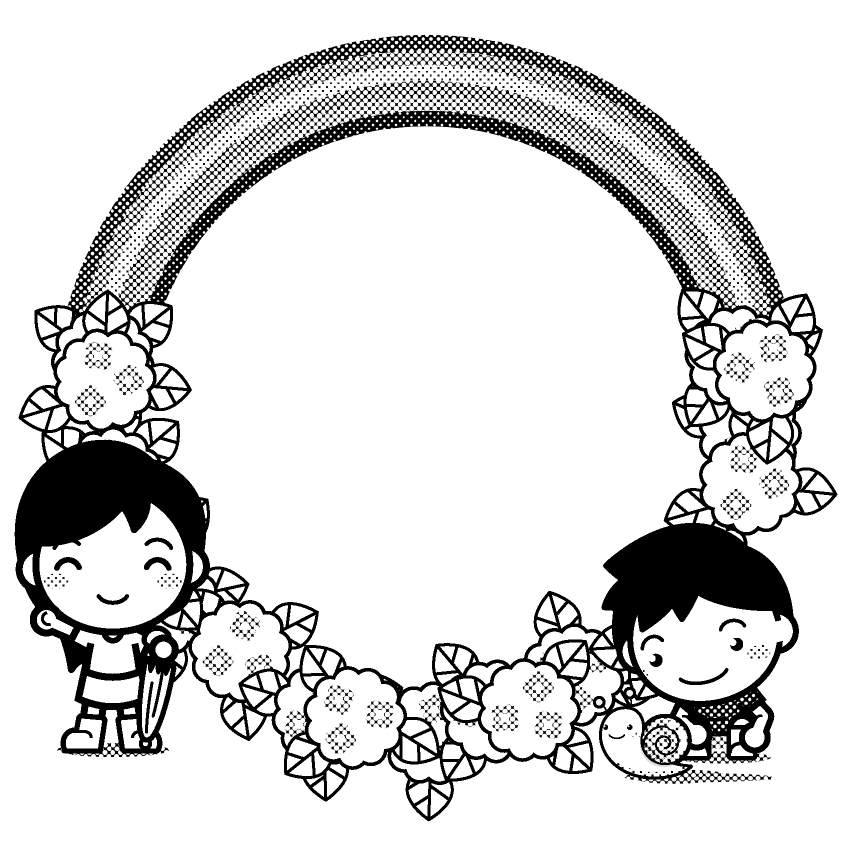 6月イラスト。雨あがりの子供たちの飾り罫イラスト素材。