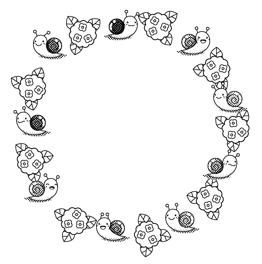 6月イラスト。紫陽花とカタツムリの飾り罫イラスト素材。