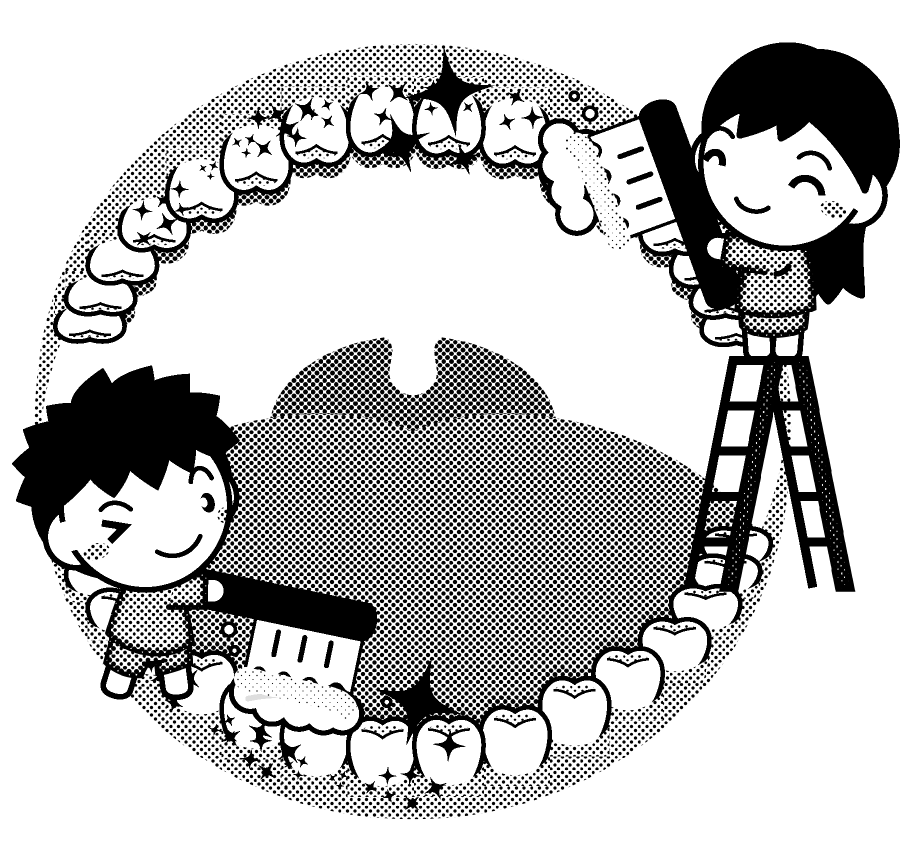 むし歯予防、歯を磨く幼稚園児の飾り罫イラスト