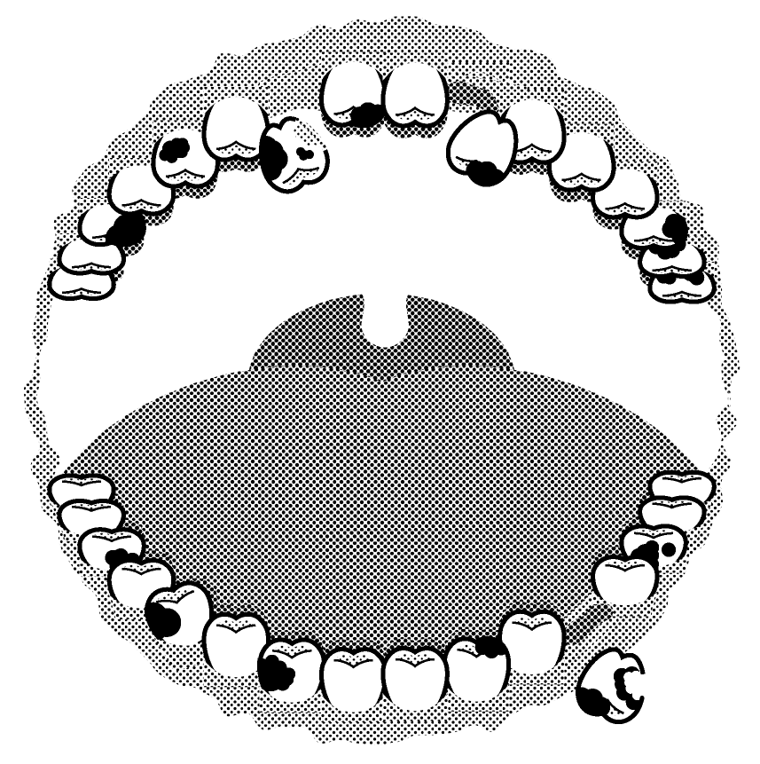 6月イラスト。むし歯でボロボロの飾り罫素材。