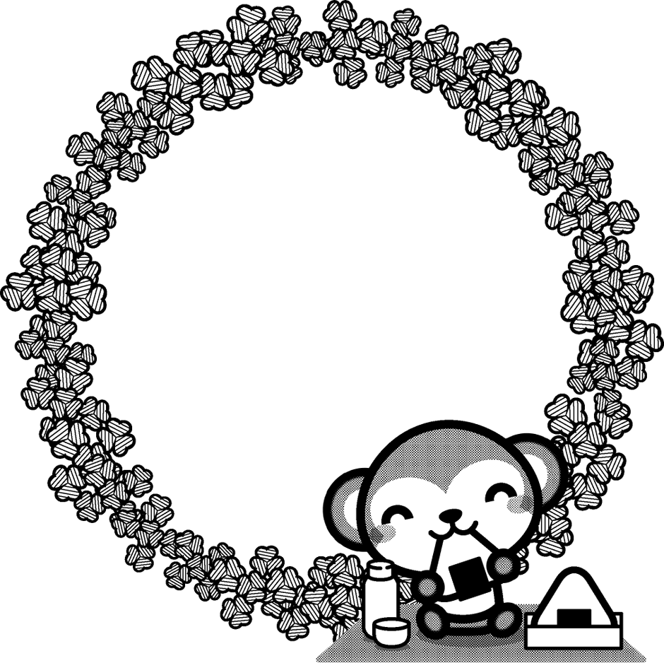 お猿とクローバーの飾り罫イラスト|クローバー|飾り罫|素材のプチッチ