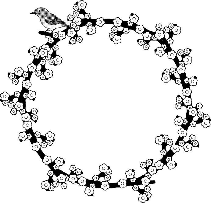 メジロと梅の花飾り罫イラスト|春の花|飾り罫|素材のプチッチ