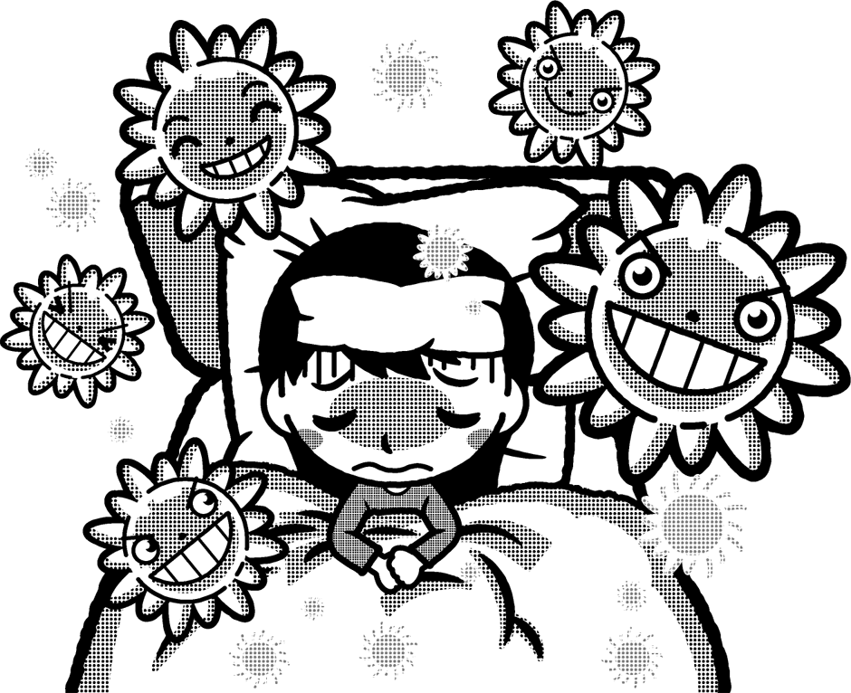 インフルエンザで寝込んでいるイラスト/女の子素材。