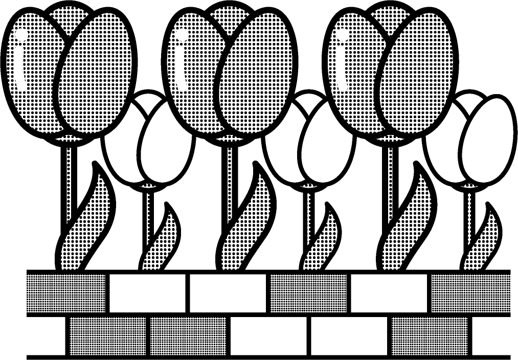4月イラスト。無料素材。花壇に植えられたチューリップのイラスト素材。