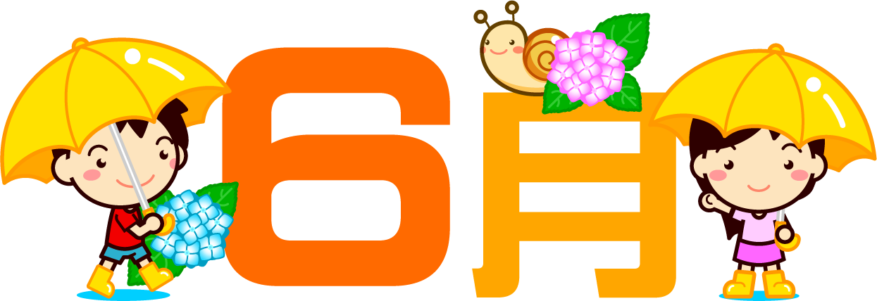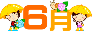 6月の文字イラスト/傘をさした子供達|6月|季節|かわいいフリー素材、素材のプチッチ