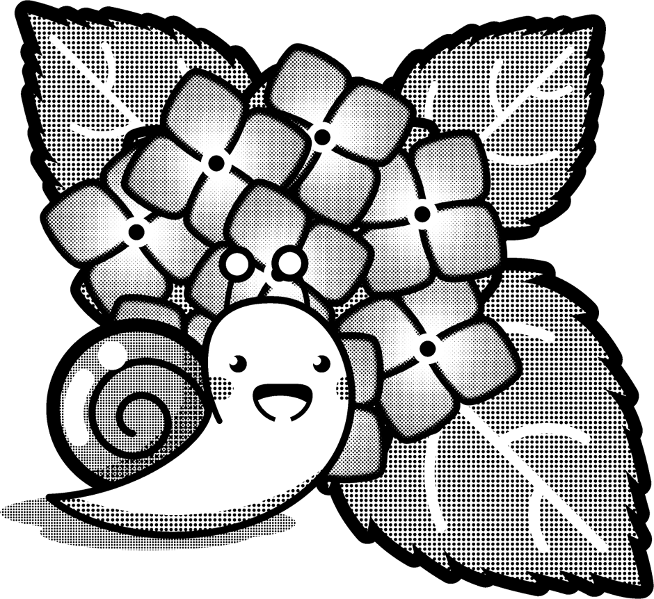 紫陽花とカタツムリのイラスト/ピンク色|梅雨|6月|季節|かわいいフリー素材、素材のプチッチ