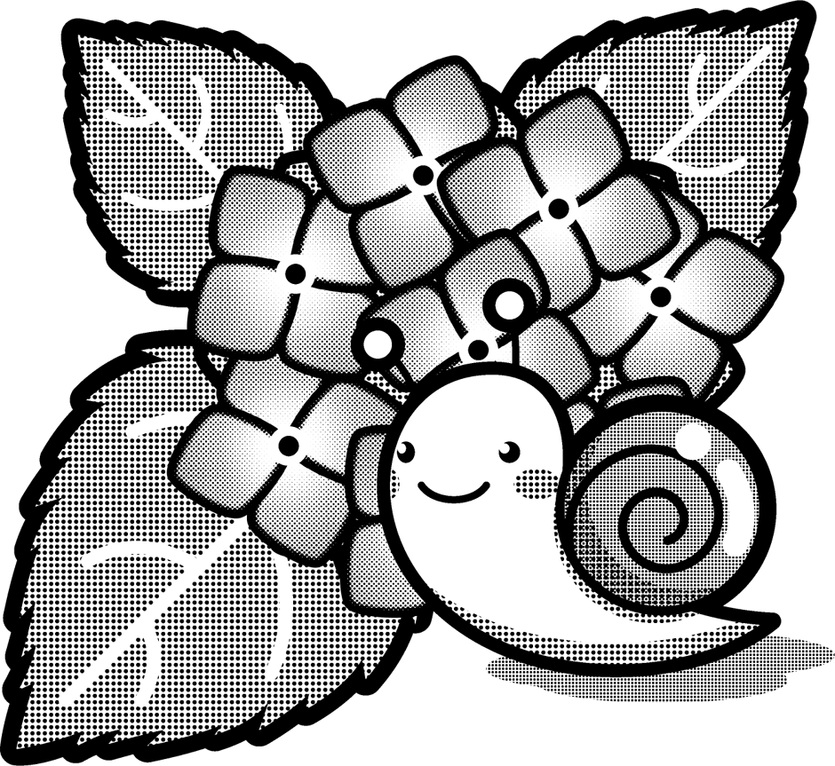 梅雨イラスト。紫陽花とカタツムリのイラスト/水色素材。
