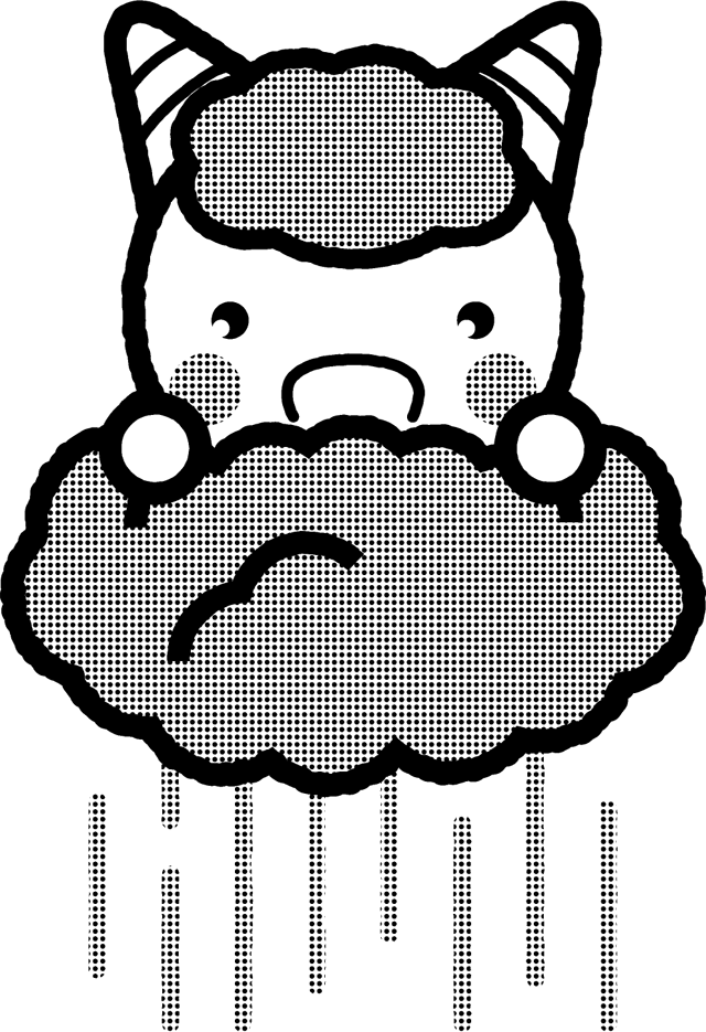 梅雨イラスト。雨雲に乗る赤鬼のイラスト素材。