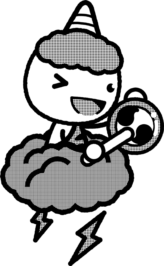 梅雨イラスト。雷雲に乗る青鬼のイラスト/雷太鼓2素材。