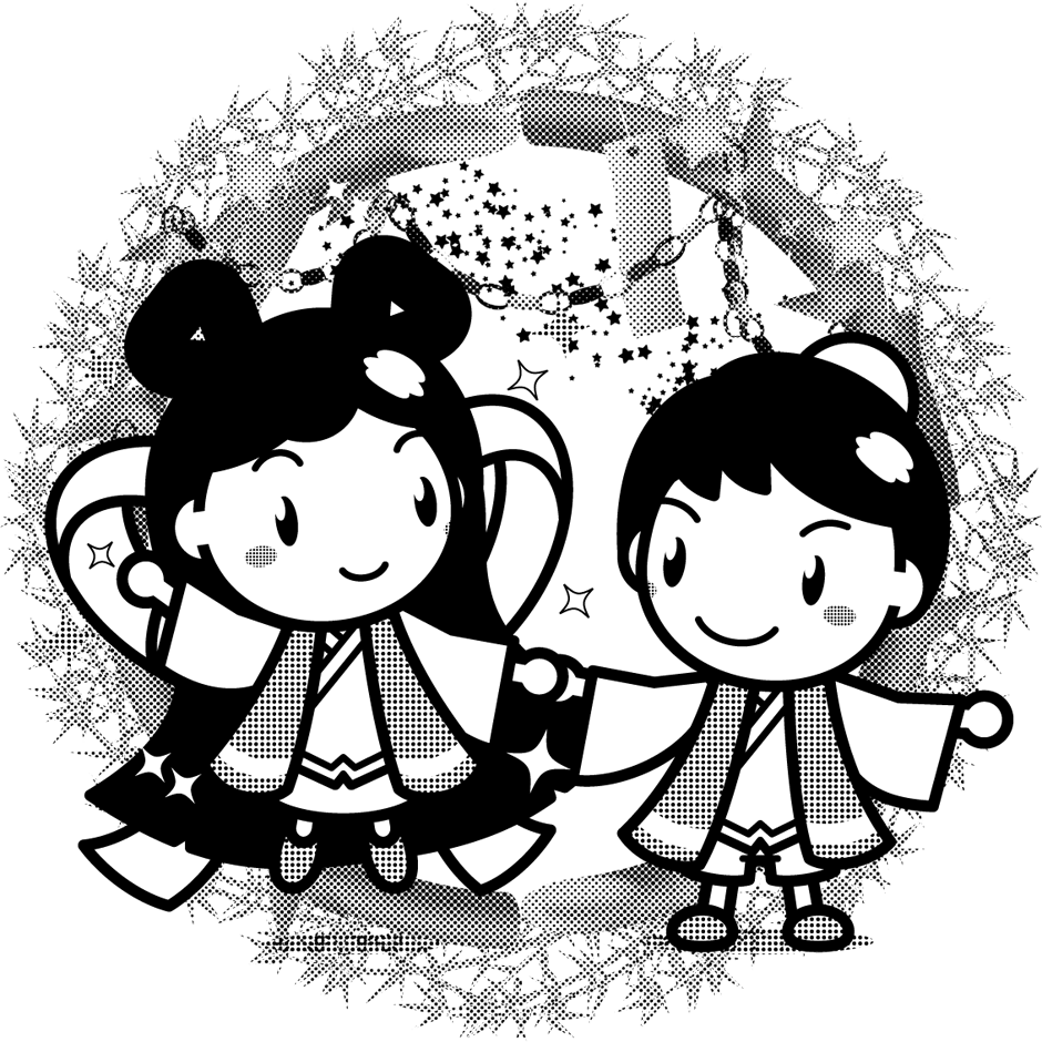 七夕、手をつなぐ織姫ちゃんと彦星くんイラスト