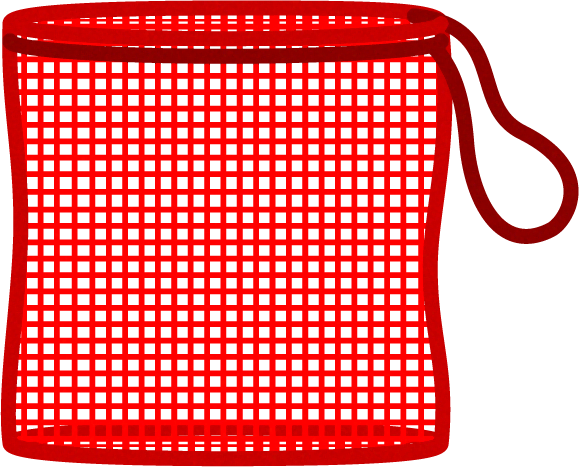 7月イラスト。貝を入れる網の袋イラスト素材。