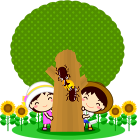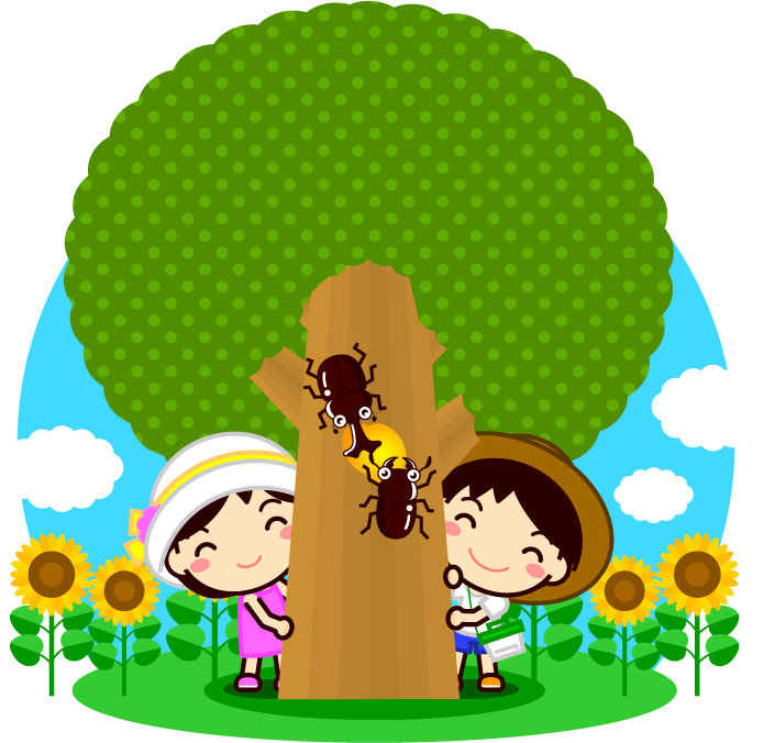 夏休みに木の蜜を吸う昆虫の観察イラスト
