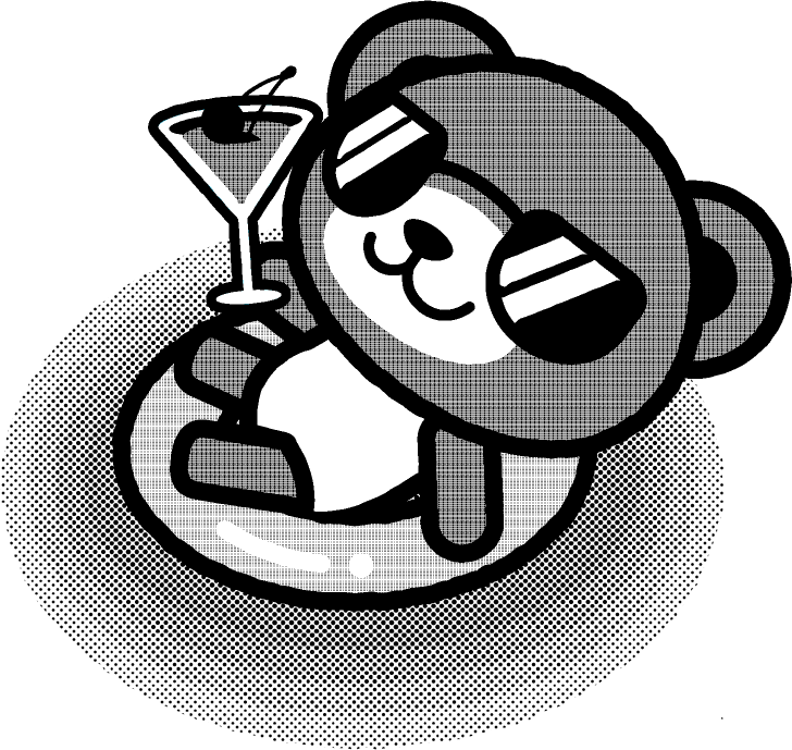 8月イラスト。クマのイラスト/浮輪の上でくつろぐ素材。