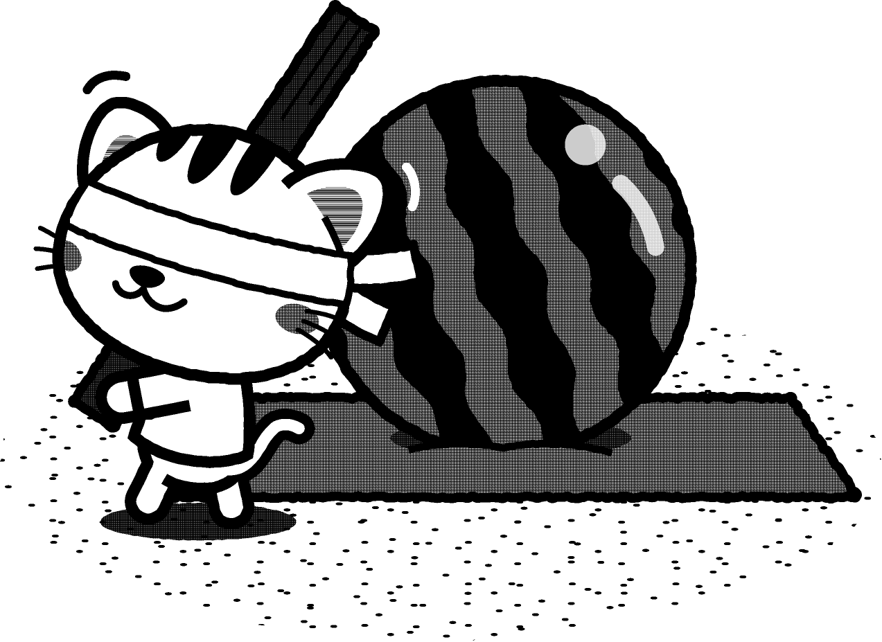 8月イラスト。トラネコのイラスト/スイカを割り2素材。