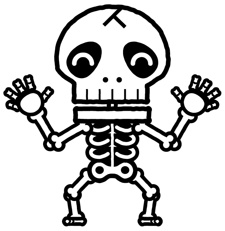 8月イラスト。骸骨のイラスト/両手を広げて笑う素材。