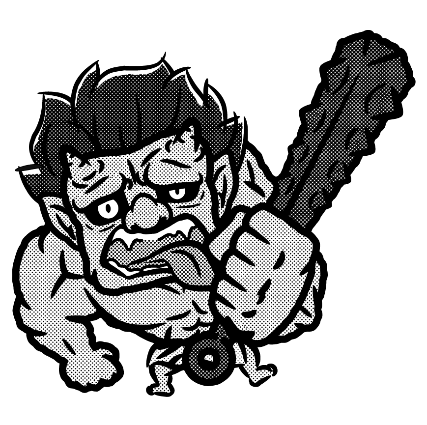 8月イラスト。金棒を持た青鬼イラスト素材。