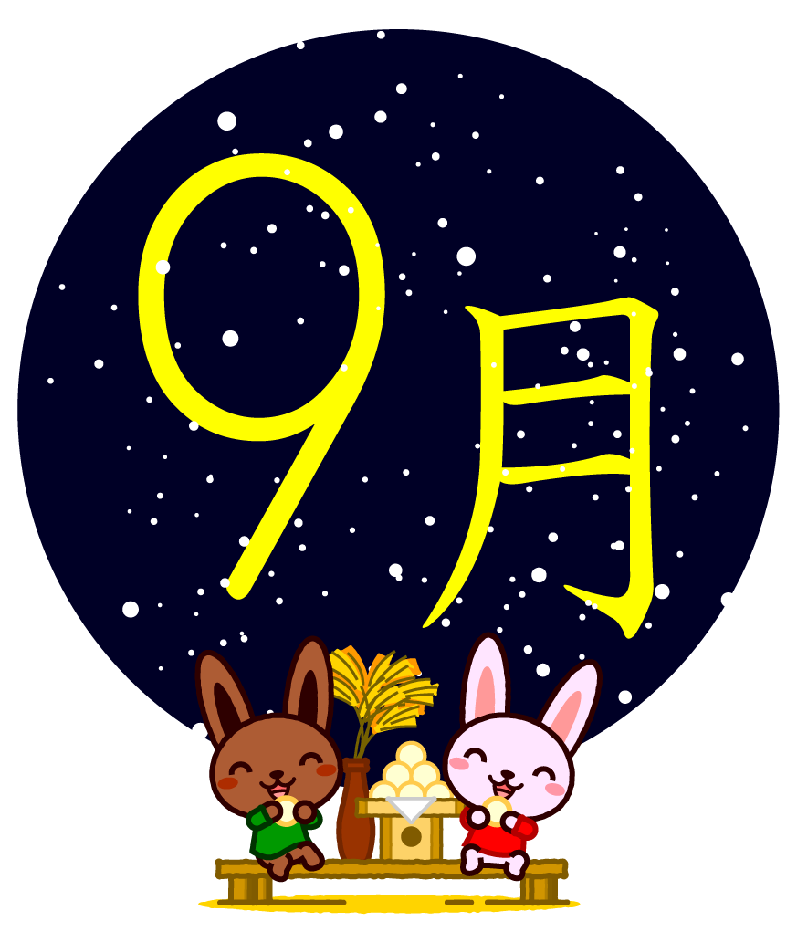 9月イラスト。月見団子を食べるウサギ素材です。小サイズ・大サイズをご用意しています。