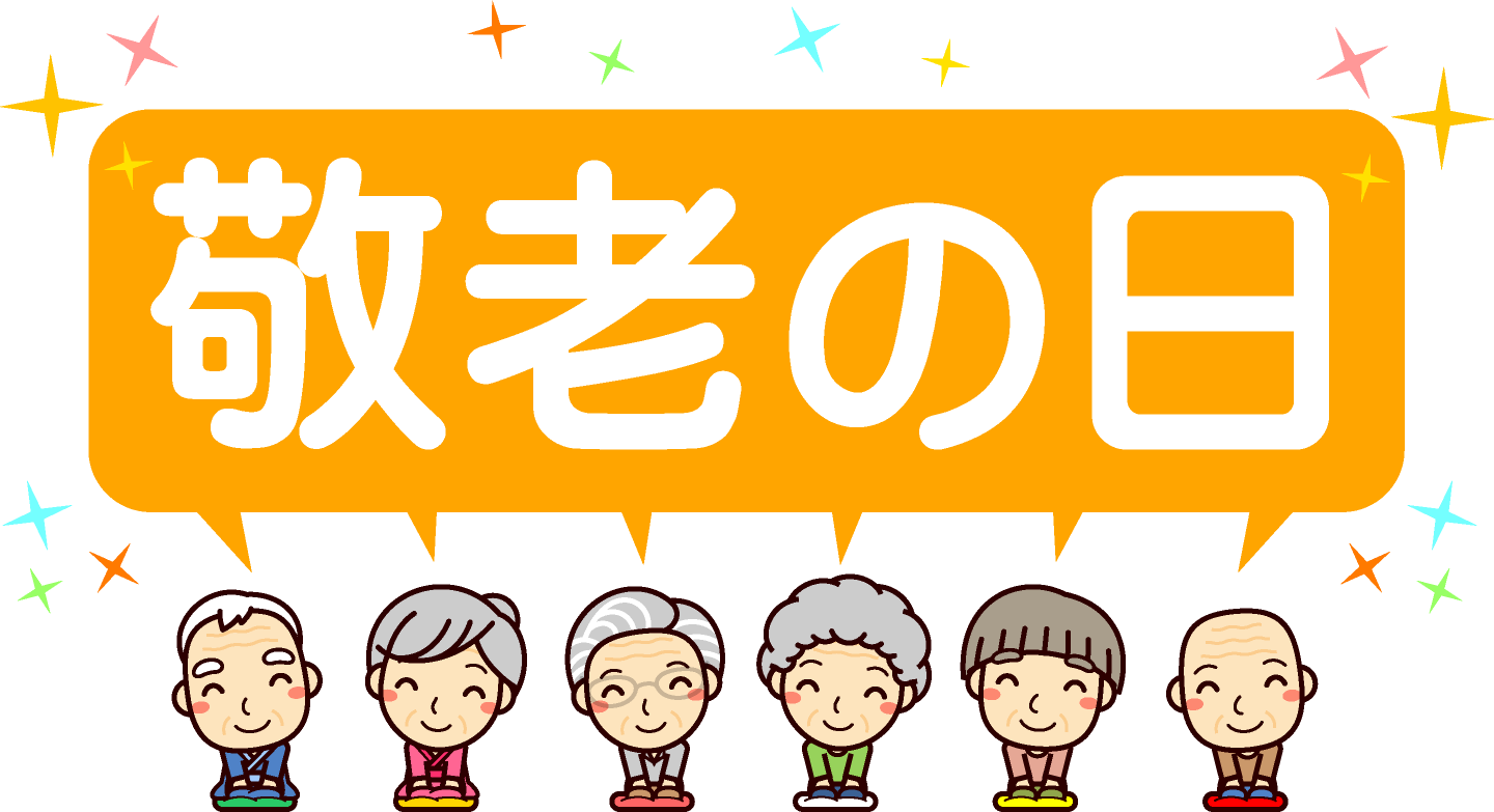 9月イラスト。敬老の日の文字イラスト/お年寄り3素材。