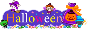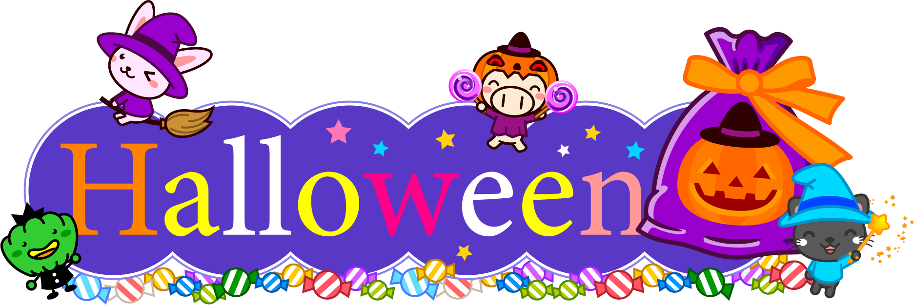 10月イラスト/秋。ハロウィンの文字と動物とお菓子イラスト素材。
