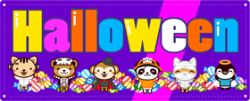 ハロウィンの文字と動物とキャンディーのイラスト|動物とハロウィン|10月|季節|かわいいフリー素材、素材のプチッチ