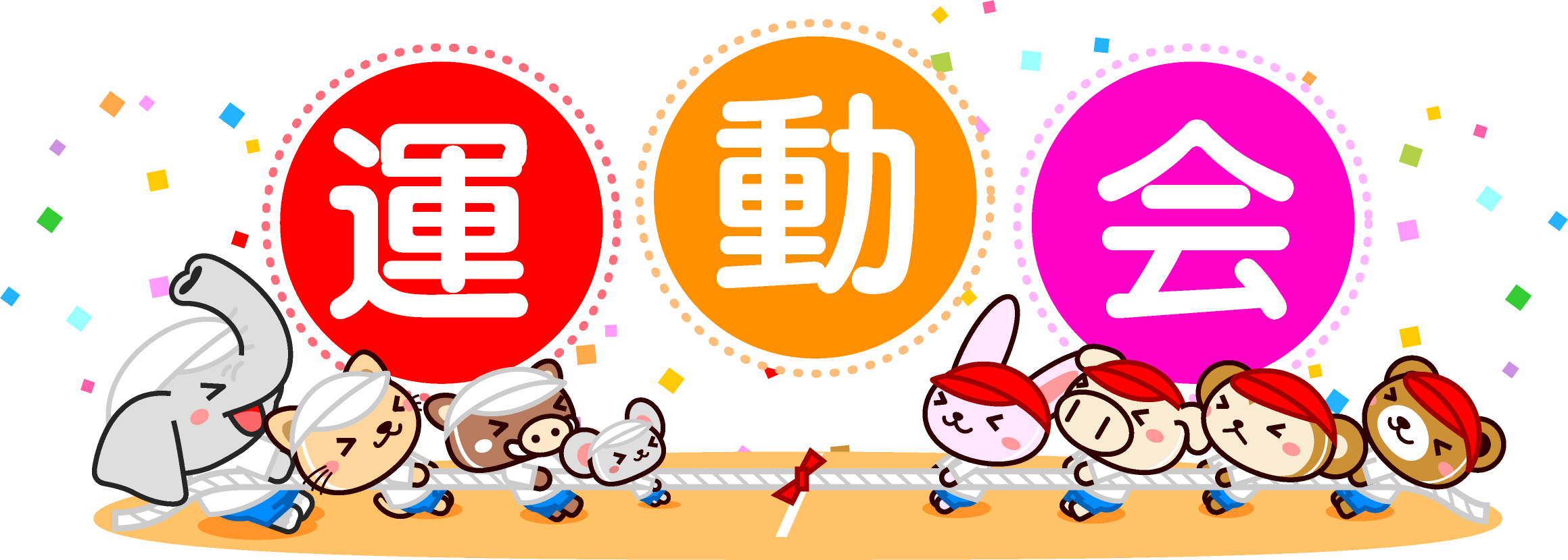 綱引きの文字と動物イラスト