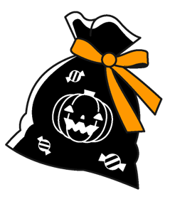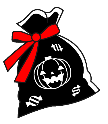 10月イラスト/秋。ハロウィンお菓子袋のシルエットイラスト素材。