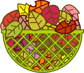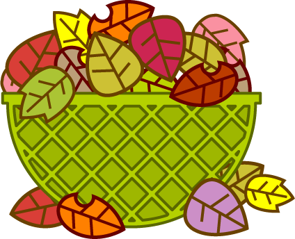 11月イラスト/秋。籠に入った落ち葉イラスト素材。