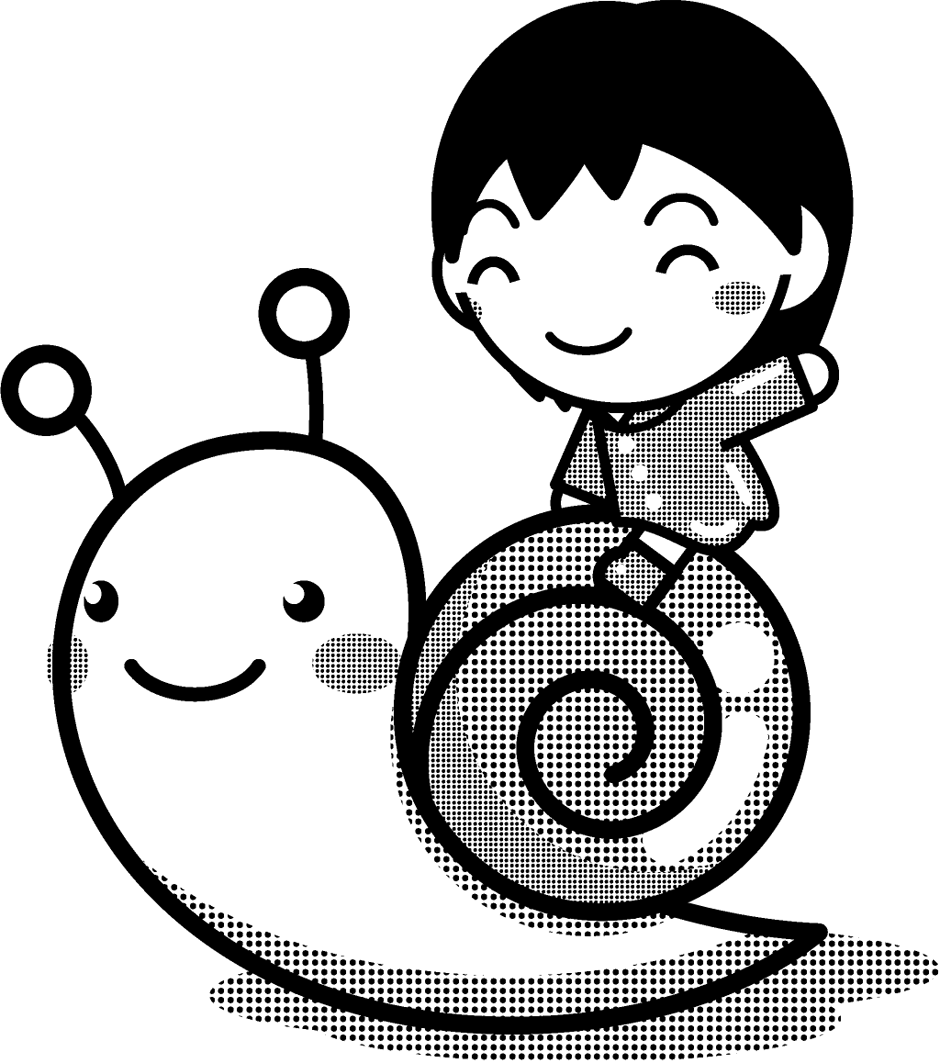6月梅雨素材。カタツムリに乗った女の子イラスト素材。